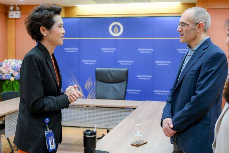 วันที่ 17 มกราคม 2568 ศาสตราจารย์ นายแพทย์ปิยะมิตร ศรีธรา อธิการบดีมหาวิทยาลัยมหิดล พร้อมด้วย รองศาสตราจารย์ ดร.วิชิตา รักธรรม รองอธิการบดีฝ่ายสื่อสารองค์กรและภาพลักษณ์ มหาวิทยาลัยมหิดล รองศาสตราจารย์ ดร.นภเรณู สัจจรักษ์ ธีระฐิติ รองอธิการบดีฝ่ายวิเทศสัมพันธ์และสภามหาวิทยาลัย มหาวิทยาลัยมหิดล และดร.ณรงค์ ปรางค์เจริญ คณบดีวิทยาลัยดุริยางคศิลป์ มหาวิทยาลัยมหิดล ร่วมให้การต้อนรับ Dr. Steven D. Eppinger, General Motors Leaders for Global Operations Professor of Management and Professor of Management Science and Innovation, MIT Sloan School of Management ประเทศสหรัฐอเมริกา ซึ่งเป็นผู้เชี่ยวชาญที่มีชื่อเสียงระดับโลกในด้าน Design Thinking and Innovation ในโอกาสเยือนมหาวิทยาลัยมหิดล พร้อมทั้งร่วมหารือวางแผนเตรียมการจัดงาน “Human Interaction for Systematic Innovation” ในวันที่ 21 มกราคม 2568 โดย กองทุนมูลนิธิมหิดลเพื่อความยั่งยืน มูลนิธิมหาวิทยาลัยมหิดลในพระราชูปถัมภ์ฯ ร่วมกับ