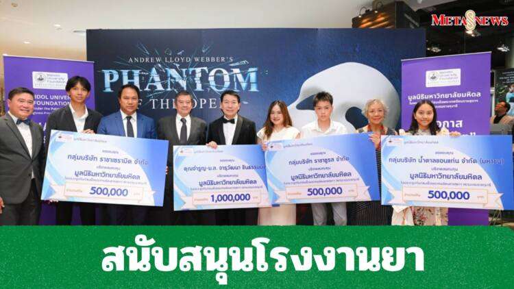 วันที่ 9 สิงหาคม 2568 ศาสตราจารย์ นายแพทย์ปิยะมิตร ศรีธรา อธิการบดีมหาวิทยาลัยมหิดล และประธานมูลนิธิมหาวิทยาลัยมหิดล ในพระราชูปถัมภ์ฯ พร้อมด้วย คณะผู้บริหารมหาวิทยาลัยมหิดล ร่วมกับภาคีเครือข่าย อาทิ คุณจำรูญ ชินธรรมมิตร์ และหม่อมหลวงจารุวัฒนา ชินธรรมมิตร์ กลุ่มบริษัท น้ำตาลขอนแก่น จำกัด (มหาชน) กลุ่มบริษัท ราชาชูรส จำกัด กลุ่มบริษัท ราชาเซรามิค จำกัด พลตำรวจเอก นายแพทย์จงเจตน์ อาวเจนพงษ์ อดีตนายกสมาคมศิษย์เก่ามหาวิทยาลัยมหิดลฯ ดร.สมศักดิ์ ลีสวัสดิ์ตระกูล นายกสมาคมศิษย์เก่ามหาวิทยาลัยมหิดลฯ บริษัท ไทยสมุทรประกันชีวิต จำกัด (มหาชน) บริษัท ไทยเบฟเวอเรจ จำกัด (มหาชน) บริษัท ดับบลิวเอชเอ คอร์ปอเรชั่น จำกัด (มหาชน) บริษัท ซีโน-แปซิฟิค เทรดดิ้ง (ไทยแลนด์) จำกัด และบริษัท ฟัน สโตน จำกัด จัดรอบการแสดงละครเวทีระดับโลก “The Phantom of the Opera” รอบการกุศล ณ เมืองไทยรัชดาลัย เธียเตอร์ กรุงเทพมหานคร