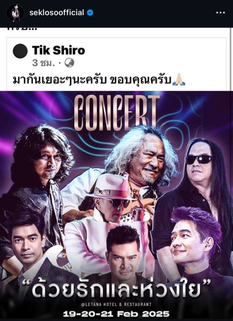 เดือดไม่น้อย กรณีอินสตาแกรม seklosoofficial ของนักร้องดัง “เสก โลโซ” ได้มีการโพสต์ภาพแคปหน้าจอที่ “ติ๊ก ชิโร่” โพสต์ชวนทุกคนมาร่วมสนุกในงานคอนเสิร์ต “ด้วยรักและห่วงใย” วันที่ 19-21 ก.พ. ที่จะถึงนี้ พร้อมบอกว่า “มากันเยอะๆนะครับ ขอบคุณครับ” โดยเสกได้ระบุแคปชั่นว่า “ผมมาคิดอีกที ขอโทษนะครับ ขอไม่ร่วมงานนี้ เพราะชีวิตเด็กสองคนกับเงิน 200,000,000 ก็ยังไม่สามารถทดแทนได้ คุณเมาทำให้เด็กสองคนตายจากอกพ่อกับแม่ ผมคิดอีกทีถ้าเป็นลูกผม ผมก็คงไม่ยอมเหมือนกัน !!” แต่ก็ทำแฟนๆ ไม่เห็นด้วย เพราะมองว่าควรให้โอกาสติ๊กมากกว่า