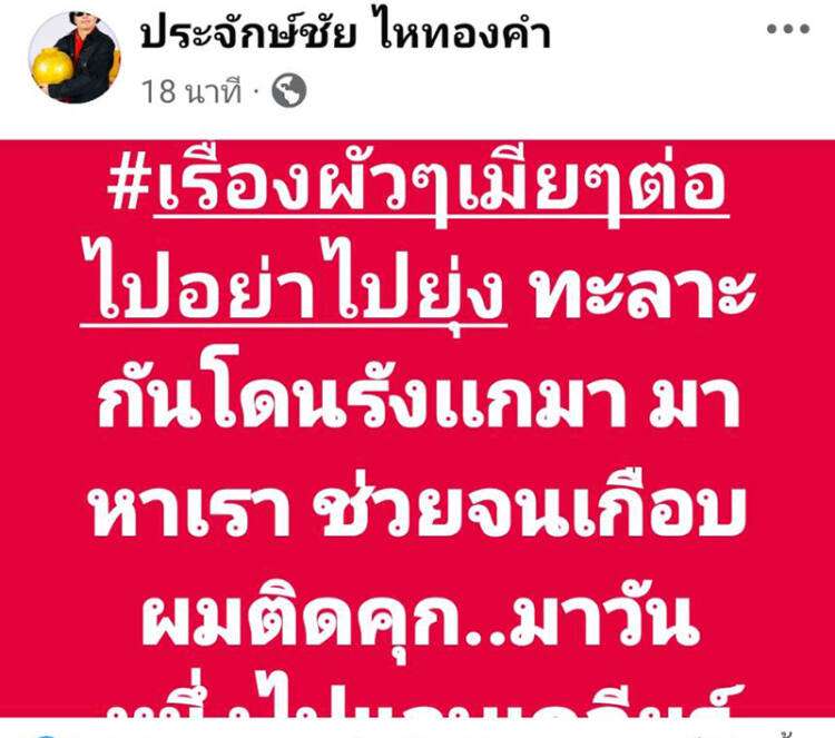 แต่จบดราม่าฝั่งครูไพบูลย์ ดราม่าฝั่ง “ประจักษ์ชัย ไหทองคำ” คนที่เคยให้ความช่วยเหลือเอ๋สมัยมีเรื่องกับครูไพบูลย์ ได้โพสต์ทันที ทั้งตัดพ้อยอมกลืนเลือด ต่อไปจะไม่ยุ่งเรื่องผัวเมีย ขึ้นศาล 7 ครั้ง จ่ายเงินไปเกือบ 2 ล้าน แถมยังเกือบติดคุกอีก