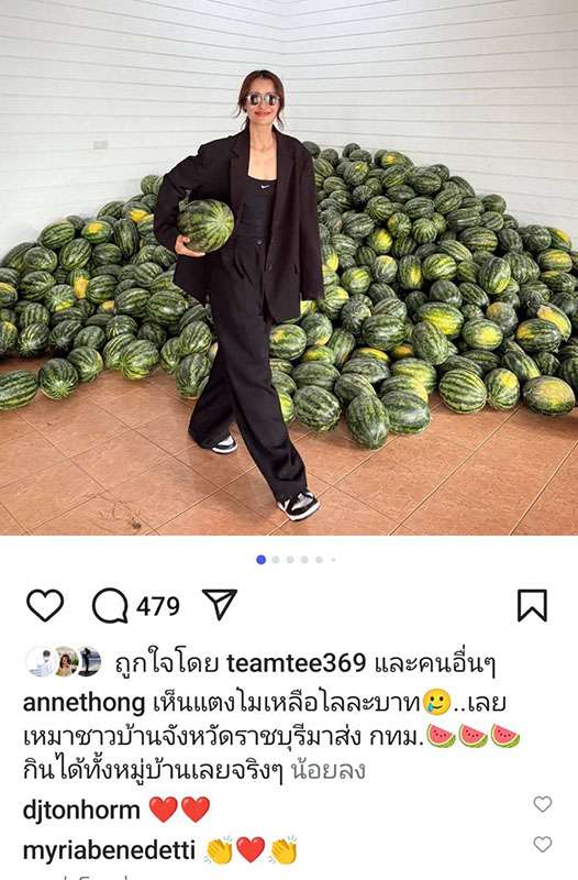 งานนี้แฟนๆ เข้าไปเมนต์ในโพสต์ดังกล่าวของแอน ชื่นชมในความน้ำใจงาม รวมทั้งมีคนเข้ามาตัดพ้อตอนนี้เกษตรกรแย่ ผัก ผลไม้ ราคาตกหมดเลย
