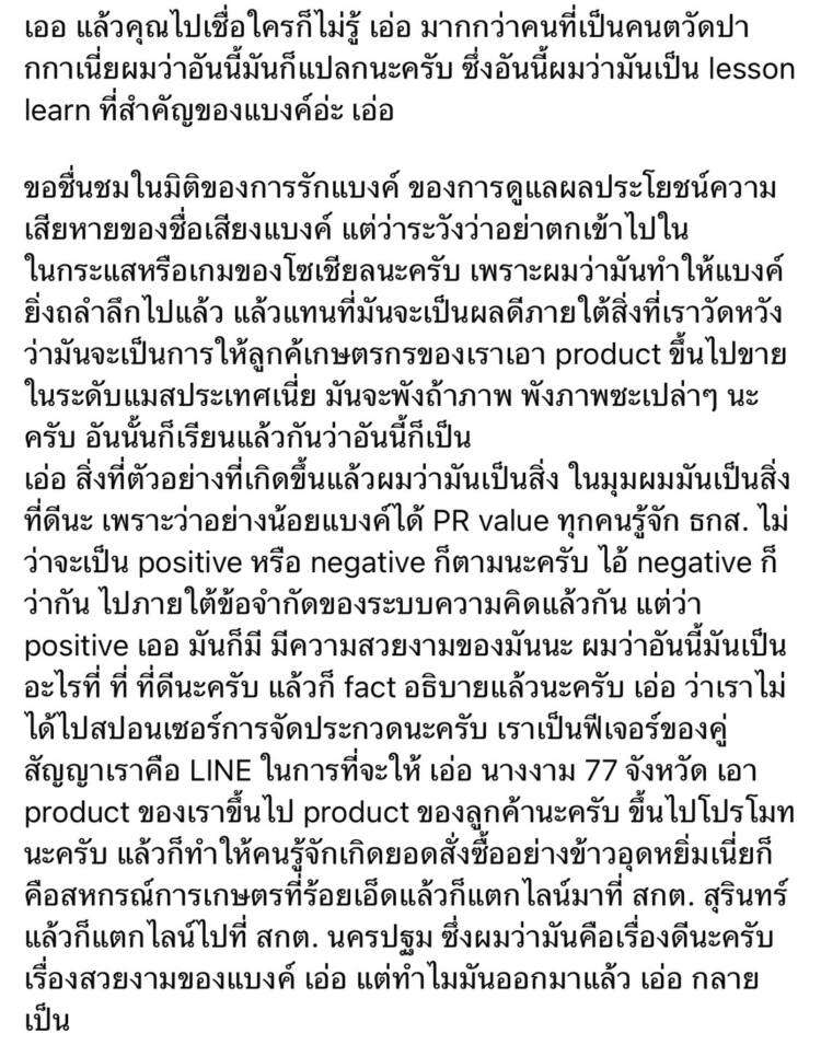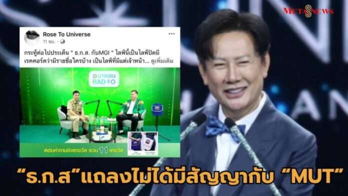 ล่าสุด (30 มิถุนายน 2568) Facebook เพจ “Rose To Universe” ได้นำวิดีโอแถลงการณ์ของผู้บริหารระดับสูงฝ่ายจัดการ “นายฉัตรชัย ศิริไล” ที่มีเนื้อหากล่าวว่า ธ.ก.ส. ไม่ได้มีการเซ็นสัญญาใด ๆ กับทาง MGI และ MUT แต่เป็นสัญญากับบริษัทไลน์ โดยจะให้ผู้เข้าประกวด MUT 77 จังหวัด ไลฟ์ขายสินค้าเกษตรซึ่งมองว่าเป็นผลดีต่อลูกค้าเกษตรกรและมีสายสะพายเป็นของรางวัลให้เท่านั้น