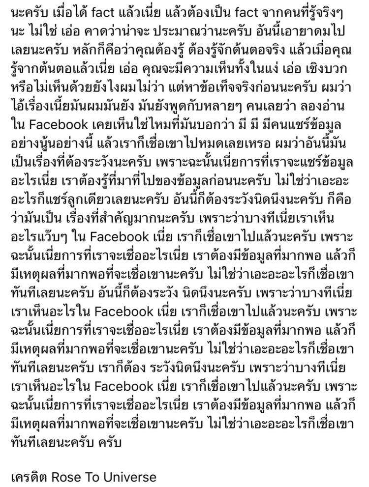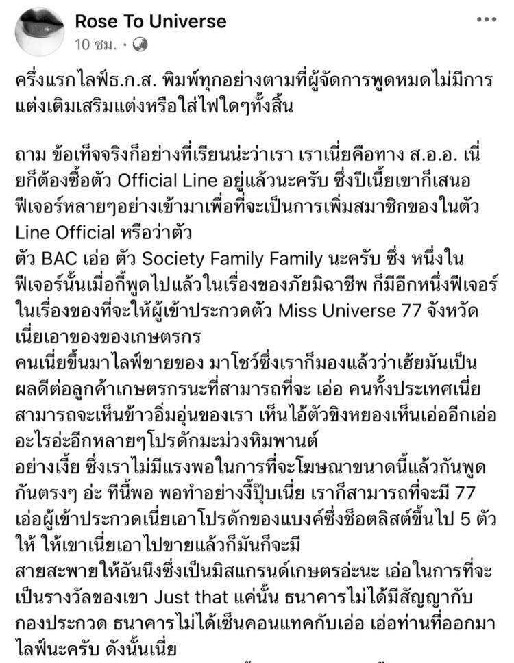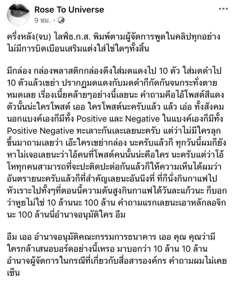 สามารถดูวิดีโอแถลงการณ์และอ่านเนื้อหาทั้งหมดได้ใน Facebook : Rose To Universe