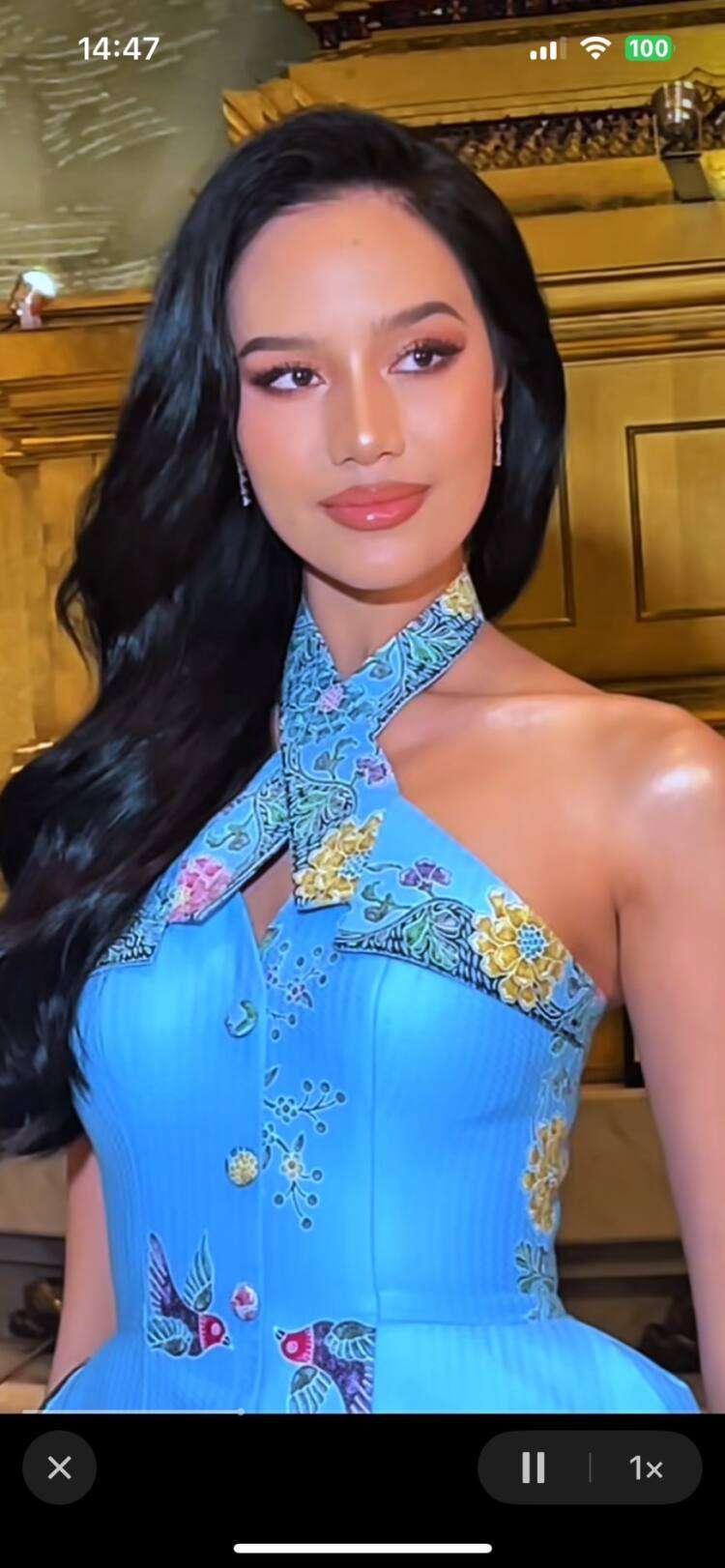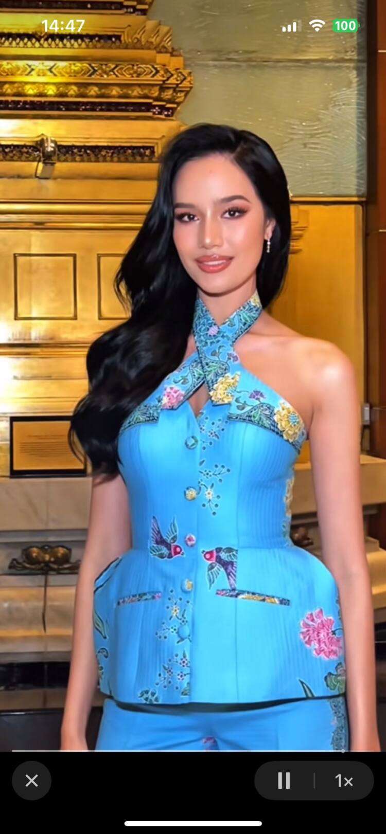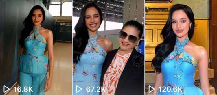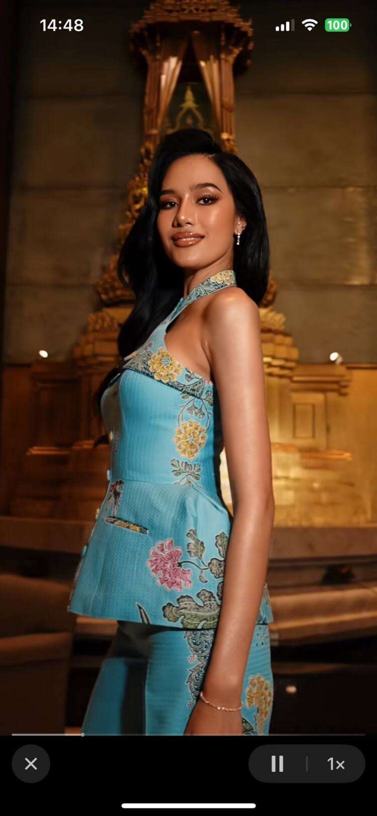 โดย Tiktok : tpn.global.official ได้โพสต์วิดีโอถึง 3 โพสต์ เป็นภาพของ “โอปอล” ในชุดผ้าปาเต๊ะสีฟ้าที่ดูสง่างาม เลอค่าสมเป็นผู้ครองมงฟ้าในปีนี้