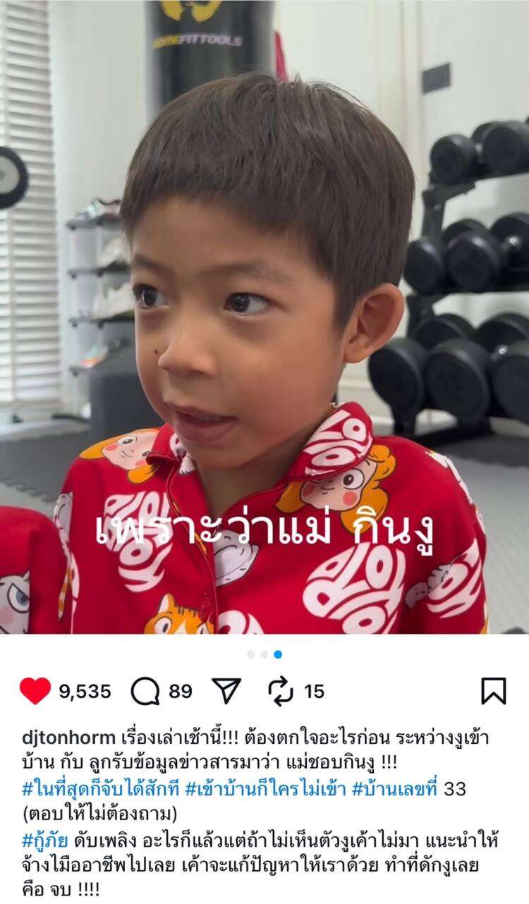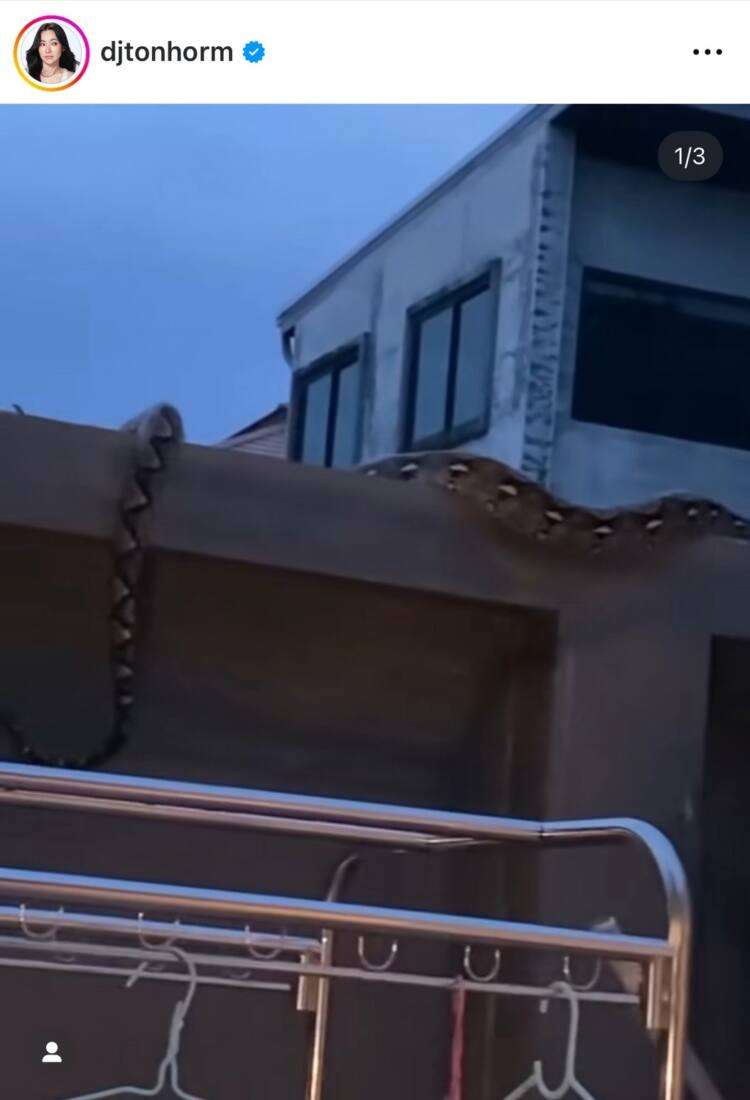 ดีเจสาวอารมณ์ดี “ต้นหอม ศกุนตลา” เจอเหตุการณ์สุดผวา เมื่อเช้ามืดที่ผ่านมา งูเหลือมขนาดใหญ่เลื้อยเข้ามาภายในบ้านของเธอ เจ้าตัวจึงรีบโพสต์ขอความช่วยเหลือผ่านทางโซเชียล พร้อมเผยภาพงูนอนอยู่บนกำแพงบ้าน พร้อมแคปชั่นแซวเบาๆ ว่า ตกใจทั้งงูบุกและเรื่องลูกรับข่าวสารแปลกๆ ที่แม่ชอบกินงู