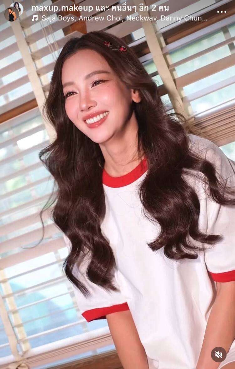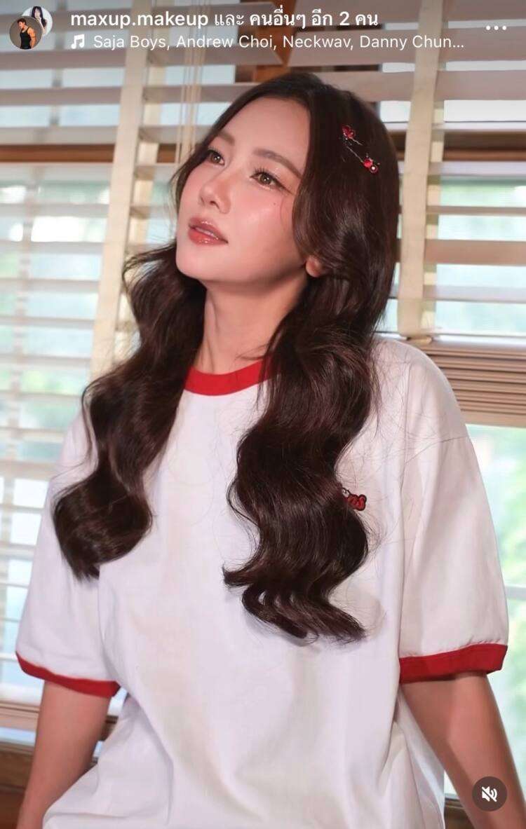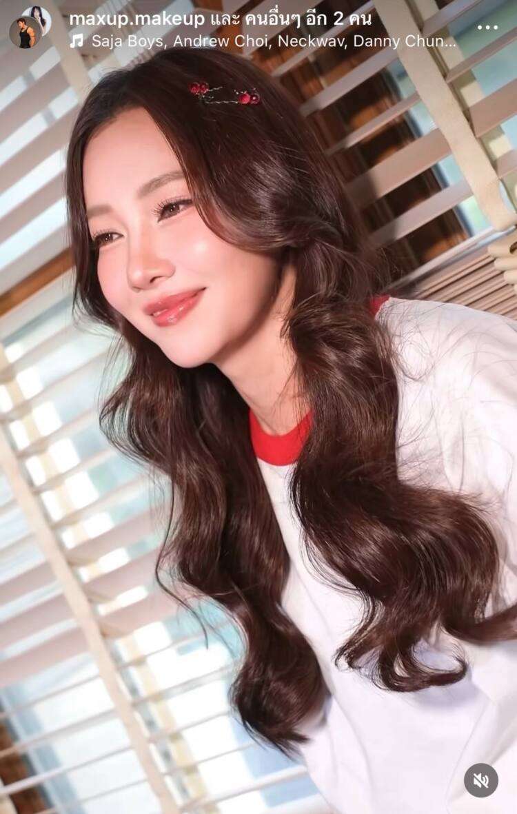 ลุคนี้ต้องยกเครดิตให้เมคอัพอาร์ติสต์ฝีมือดีอย่าง @maxup.makeup ที่เนรมิตความหวานให้เจ้าตัวในโทนธรรมชาติ แต่มีความเกาหลีกรุบ ๆ ผิวโกลว์ฉ่ำ ดวงตากลมใส และริมฝีปากสีชมพูอมแดงสดใส ทำเอาแฟน ๆ พากันแห่คอมเมนต์ชมความหน้าเด็กของนางเอกคนดังแบบรัว ๆ