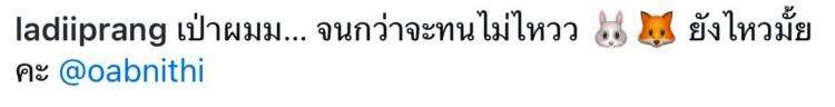 แต่พอเลื่อนมาอ่านแคปชั่นก็ถึงบางอ้อ เพราะสาวปรางเฉลยไว้ว่า “เป่าผมม… จนกว่าจะทนไม่ไหวว 🐰🦊 ยังไหวมั้ยคะ @oabnithi”เล่นเอาทั้งขำทั้งเขินกันไปถ้วนหน้า เพราะกลายเป็นการโปรโมทเพลงเศร้าแบบหวาน ๆ ที่แถมอวดแฟนไปในตัว