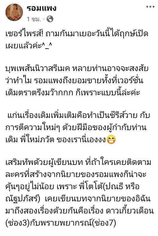 บุพเพสันนิวาสรีเมก หลายท่านอาจจะสงสัยว่าทำไม รอมแพงถึงยอมขายทั้งที่เวอร์ชั่นเดิมตราตรึงมว๊ากกก ก็เพราะแบบนี้ล่ะค่ะ