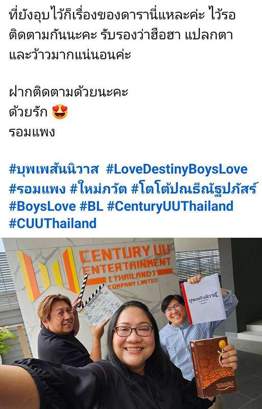 ที่ยังอุบไว้ก็เรื่องของดารานี่แหละค่ะ ไว้รอติดตามกันนะคะ รับรองว่าฮือฮา แปลกตาและว้าวมากแน่นอนค่ะ ฝากติดตามด้วยนะคะ ด้วยรัก 😍 รอมแพง #บุพเพสันนิวาส #LoveDestinyBoysLove #รอมแพง #ใหม่ภวัต #โตโต้ปณธีณัฐปภัสร์ #BoysLove #BL #CenturyUUThailand #CUUThailand”