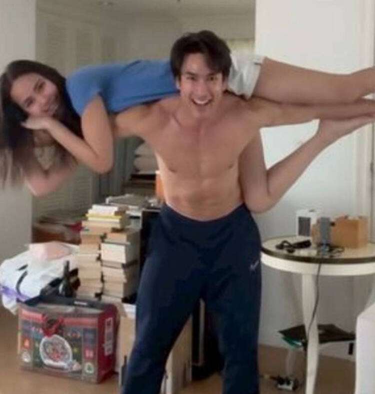 “คนอยากเกิดเป็นญ่าก็เข้าใจได้ค่ะ ช่วงนี้พี่แบร์ ญ่ารู้ว่าน่าจะเคยพูดคำนี้มาหลายรอบแล้ว แต่ว่าพี่แบร์ช่วงนี้เขาท็อปฟอร์มจริงๆ เขากำลังถ่ายเรื่องนึงที่ต้องใช้ร่างกายเยอะ ก็คิดว่านี่จะเป็นโอกาสที่ดีที่คนไม่ได้ตัวเล็กอย่างญ่าจะขึ้นไปอยู่บนไหล่เขาได้ แต่ได้แค่รอบเดียวนะ หลังจากนั้นบอกปวดหลังแล้ว แบบนี้ไม่เคยทำค่ะ นี่รอบแรก เห็นในติ๊กต๊อกก็เลยอยากทำบ้าง ก็เจ็บซี่โครงนิดนึง แต่สนุกดีค่ะ ตอนแรกคิดว่าพี่แบร์จะยกไม่ไหว เพราะญ่าไม่ได้ตัวเล็ก น่าจะหนักพอสมควร”