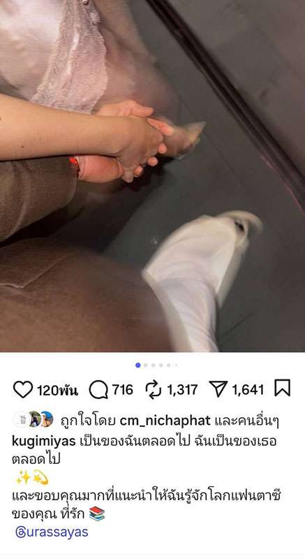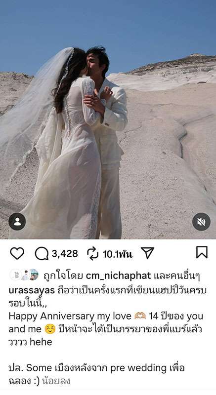 ขณะที่ “ณเดชน์” เผยว่า “เป็นของฉันตลอดไป ฉันเป็นของเธอตลอดไป ✨💫 และขอบคุณมากที่แนะนําให้ฉันรู้จักโลกแฟนตาซีของคุณ ที่รัก 📚 @urassayas #our14th”