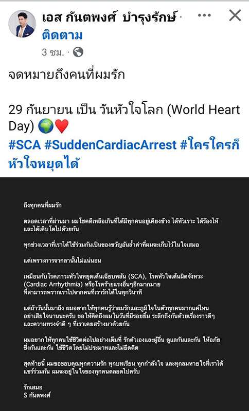 แฟนๆ แห่ส่งกำลังใจ หลัง “เอส กันตพงศ์” โพสต์ข้อความถึงทุกคนที่รัก แต่ข้อความแฝงไปด้วยนัยยะอะไรบางอย่าง ด้วยเนื้อหาเผยว่า