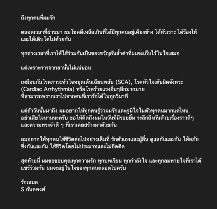 สุดท้ายนี้ ผมขอขอบคุณทุกความรัก ทุกบทเรียน ทุกกำลังใจ และทุกลมหายใจที่เราได้แชร์ร่วมกัน ผมจะอยู่ในใจของทุกคนตลอดไปครับ