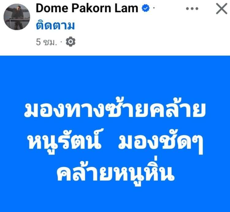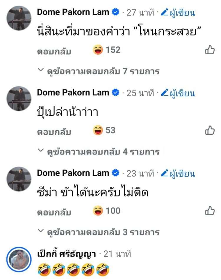 เงิบแล้วเงิบอีก นางงามกัมพูชา กล่าวหา “พี่โดม ปกรณ์ ลัม” อ่อย จีบทางสายตา ทำโดม ปกรณ์ ลัม โพสต์ฟาดกลับรัวๆ ทั้งโดนของขมอยเข้าให้แล้ว ซีม่า(ยาแก้คัน) เข้าได้นะ รวมทั้งเผยให้เห็นภาพห้อยพระกันผีเต็มคอ ล่าสุดยังฟาดแรงว่า มองทางซ้ายคล้ายหนูรัตน์ มองชัดๆ คล้ายหนูหิ่น หูยยย โดนแรงแบบนี้ เอาหน้ามุดไหนดีเนี่ย!