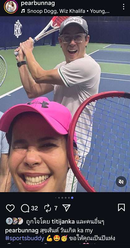บ่งบอกถึงความสนิทสนมเป็นอย่างดี สำหรับ “ไฮโซแพร์ ปาลาวี บุนนาค” กับ “เจ เจตริน” ที่ล่าสุด ไฮโซแพร์ โพสต์อวยพรวันเกิดหนุ่มเจ ด้วยข้อความว่า “Happy Birthday ka my #sportsbuddy Wishing u the 555555 year of laughters and fun activities! #hyperpeeps” (แปลว่า สุขสันต์วันเกิดนะเพื่อนคู่หูเล่นกีฬาของฉัน ขอให้เป็นปีที่มีแต่เสียงหัวเราะ 55555 และกิจกรรมสนุกๆ เลยนะ #กลุ่มคนพลังล้นเหลือ)” ขณะที่ เจ ได้เข้าไปเมนต์ขอบคุณ พร้อมเรียกไฮโซแพร์ด้วยคำเดียวกันว่า sports buddy ขณะที่ได้โพสต์ภาพซีฟๆ ของทั้งคู่ระหว่างทำกิจกรรมด้วยกัน ทั้งเล่นสกี กีฬาทางน้ำ ตีแบดฯ ตีกอล์ฟ ไปด้วยกันทุกที่ มิตรภาพแน่นแฟ้นมากๆ