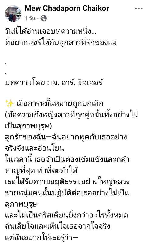 (ข้อความถึงหญิงสาวที่ถูกคู่หมั้นทิ้งอย่างไม่เป็นสุภาพบุรุษ)