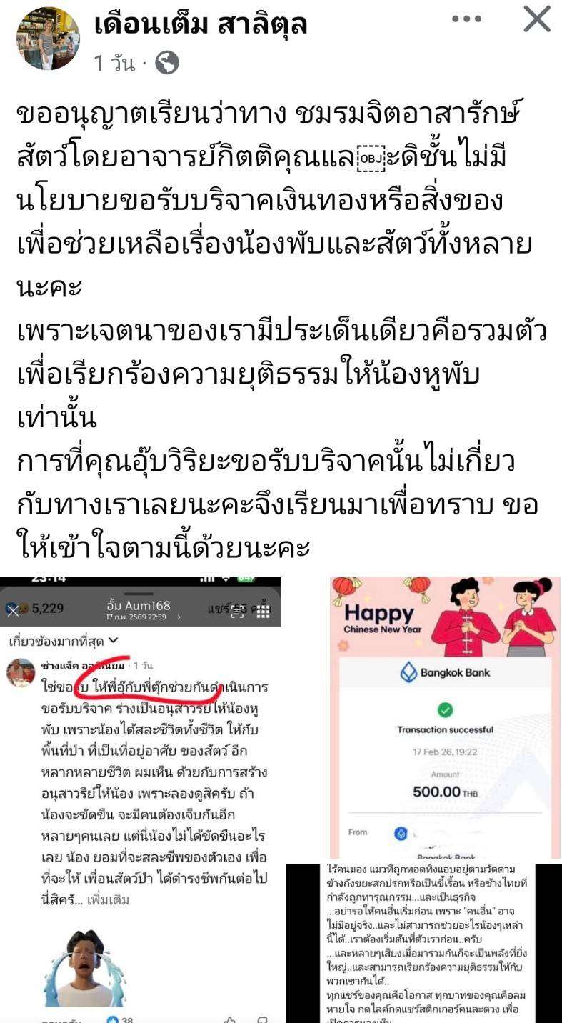 ล่าสุด “ตุ๊ก เดือนเต็ม” ได้ออกมายืนยันว่าชมรมฯ และตนเอง ไม่มีส่วนเกี่ยวข้องกับการเปิดรับบริจาคของอุ๊บ วิริยะ