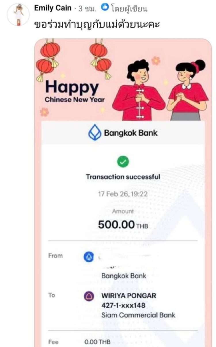 การที่คุณอุ๊บวิริยะขอรับบริจาคนั้นไม่เกี่ยวกับทางเราเลยนะคะจึงเรียนมาเพื่อทราบ ขอให้เข้าใจตามนี้ด้วยนะคะ”