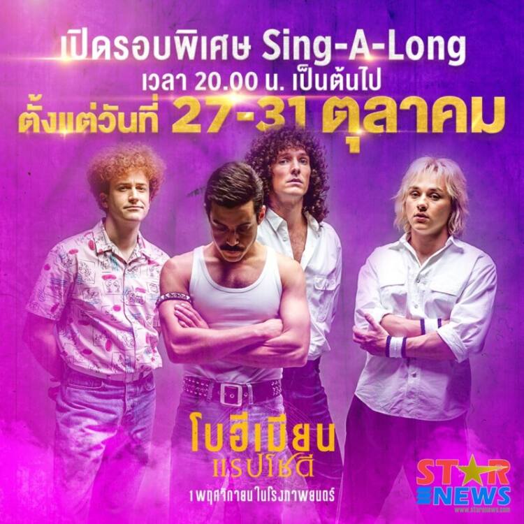 ไม่ว่าจะคอภาพยนตร์ หรือ คอเพลง วอร์มเสียงและซ้อมเพลงรอกันได้เลย!!! เพราะ “Bohemian Rhapsody – โบฮีเมียน แรปโซดี” ได้เตรียมเปิดรอบพิเศษ Sing-A-Long ตั้งแต่วันที่ 27 – 31 ตุลาคม นี้ หลัง 2 ทุ่มเป็นต้นไป ห้ามพลาด!!! ไปดูหนังพร้อมโชว์พลังของชาวร็อคให้ดังลั่นโรงกันได้เลย