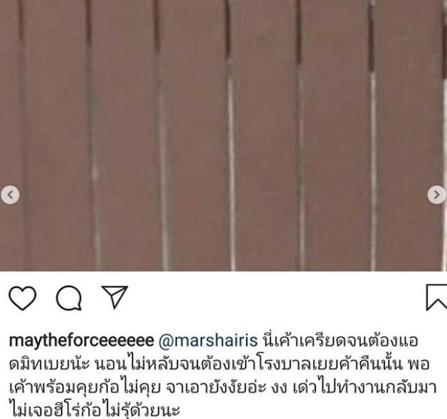 “FC พี่ไม่มีใครเหนือกว่าใคร แม้จะมาใกล้ตัวไม่ใช่เหนือกว่าใครเขา #marshalife ขอปิดคอมเมนท์ขี้เกียจฟัง เบื่อดราม่า 1 คำพูด ต่างวาระกันไป ก็มีประมาณ 2,000 วาระ ดูกันต่อไป”