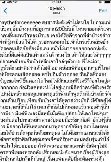“ก็แอบได้ยินว่าในใจแฟนๆ คิดอยู่พี่รู้ได้ไงว่าไม่ใช่ เพราะอดทนเฝ้ามองมา 2 ปี ไม่ได้มาบอกน้องๆ ในวันแรกที่โดนทำร้ายขนาดนี้ กาลเวลาก็พิสูจน์คนค่ะ OK นะ”
