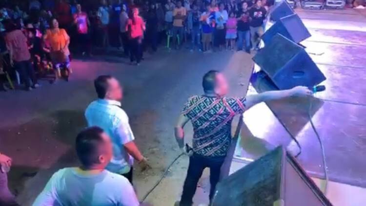 ฝ่ายเจ้าภาพเล่าเรื่องอีกมุม หลังมีคลิปฉุนคว้าไมค์ด่ากราดคนมายืนมุงดู ตั๊กแตน ชลดา ทั้งที่ไม่เสียเงิน ยืนบังคนนั่งโต๊ะ ชี้ข้างล่างมีเรื่อง แต่ ตั๊กแตน ไม่ยอมหยุดร้องเลยโมโห