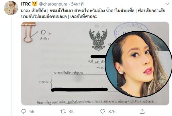 “มาค่ะ เปิดปีกัน กระเช้าไม่เอา คำขอโทษไม่ต้อง น้ำตาไม่ช่วยเช็ด ฟ้องเรียกค่าเสียหายกันไปแบบนิดๆ หน่อย ๆ เจอกันที่ศาลค่ะ”