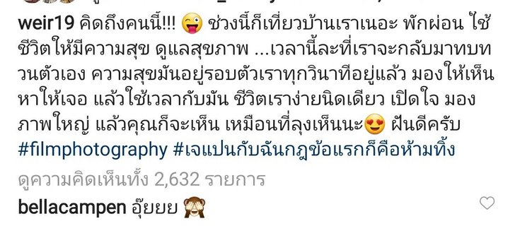 “คิดถึงคนนี้!!! ช่วงนี้ก็เที่ยวบ้านเราเนอะ พักผ่อน ใช้ชีวิตให้มีความสุข ดูแลสุขภาพ… เวลานี้ละที่เราจะกลับมาทบทวนตัวเอง ความสุขมันอยู่รอบตัวเราทุกวินาทีอยู่แล้ว มองให้เห็น หาให้เจอ แล้วใช้เวลากับมัน ชีวิตเราง่ายนิดเดียว เปิดใจ มองภาพใหญ่ แล้วคุณก็จะเห็น เหมือนที่ลุงเห็นนะ ฝันดีครับ #filmphotography #เจแปนกับฉันกฎข้อแรกก็คือห้ามทิ้ง”