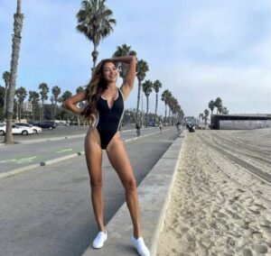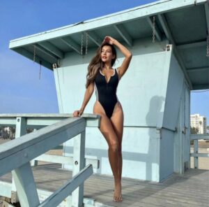 ที่ล่าสุดสาวโยก็ขอท้าลมหนาวด้วยการใส่ชุดว่ายน้ำเว้าสูงอวดหุ่นสุดเฟิร์ม โพสท่าริมหาดซานตาโมนิก้า รัฐแคลิฟอร์เนีย แบบไม่หวั่นความหนาวเย็นของอากาศ