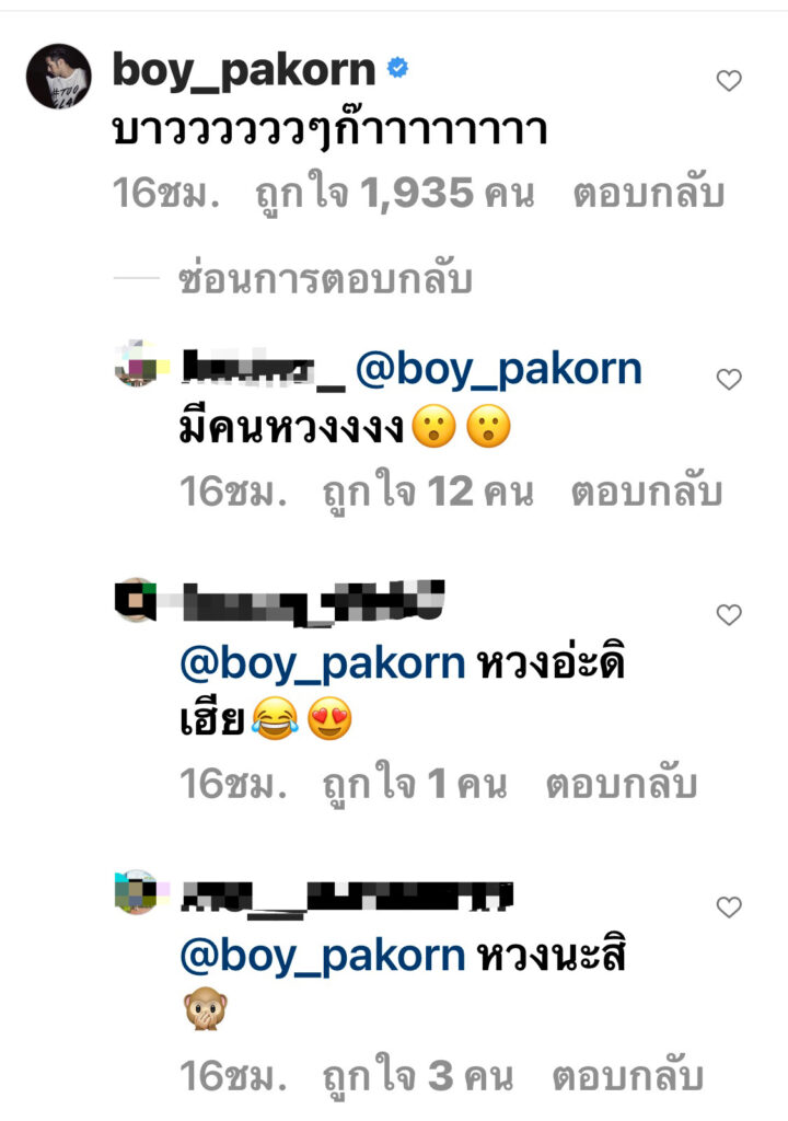 พระเอกหนุ่มถึงกับรีบเข้ามาคอมเมนต์ติงเบาๆ ว่า “บาววววววๆก๊าาาาาาาา”