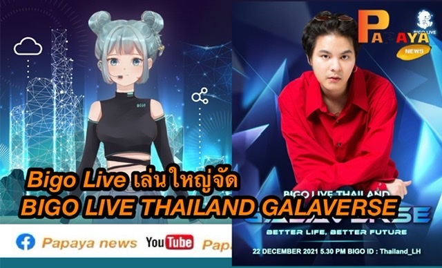 20 ธันวาคม 2564 Bigo Live Thailand ขอส่งท้ายปีเก่าด้วยความปังภายใต้ตีม Metaverse เชิญชวนผู้ชมทั่วโลกร่วมลุ้นผู้ชนะรางวัลต่างๆจากBigo Live Thailand ในวันที่ 22 ธันวาคม 2564 ตั้งแต่ 17:30น. เป็นต้นไป ผ่านการถ่ายทอดสดผ่านแอป BIGO Live และหน้าเฟซบุ๊คแฟนเพจBigo Live Thailand ตลอดงาน โดยถือเป็นการจัด GALA ิ่งใหญ่แบบนี้ครั้งแรกในประเทศไทย
