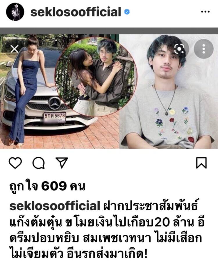 หลังจากนั้นเสก โลโซ ก็ได้มีการโพสต์ข้อความอีกว่า “ฝากประชาสัมพันธ์ แก๊งต้มตุ๋น ขโมยเงินไปเกือบ 20 ล้าน อีxx ปอบหยิบ สมเพชเวทนา ไม่มีเสือกไม่เจียมตัว นรกส่งมาเกิด !”