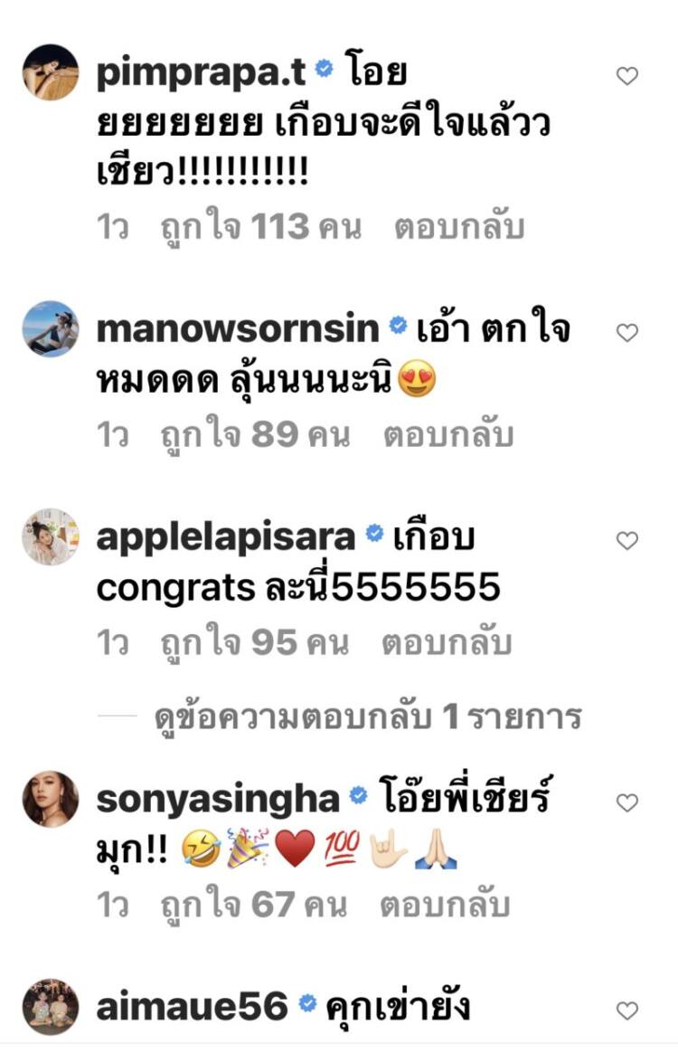 โดยเพื่อนๆ ในวงการบันเทิง ต่างก็เข้ามาขำ กับมุกของนางเอกคนดัง แถมยังบอกอีกว่าตกใจหมด เกือบแสดงความยินดีแล้ว