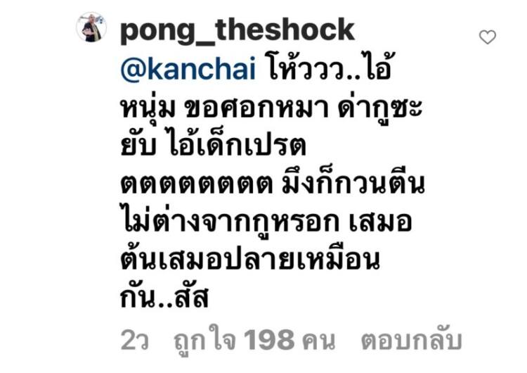 ซึ่งหนุ่ม กรรชัย ก็ได้เข้ามาคอมเม้นต์ ขยี้ป๋องจนเละว่า “โอ้โห รูปขวานี่พี่โคตรเท่อ่ะพี่ป๋อง รูปนี้คือได้อ่ะ เห็นแล้วอยากถามว่าพี่โตมาได้ไงอ่ะ หน้าแบบนี้นะพี่ ควรโดน 4kings กระทืบขี้แตกตั้งแต่สมัยนั้นแล้วนะ เห้ยพี่โตมาได้นี่พี่แม่งใจหว่ะพี่ เจ็งมาก สมฉายา ไอ้ป๋อง หน้าสันขวาน มาก ๆ ครับพี่ แต่เอาจริงนะพี่ หน้าพี่ตอนนั้นกับตอนนี้ กวนตีนไม่ต่างกันเลย ดีครับ ดูเหี้ย มเสมอต้นเสมอปลายดี”