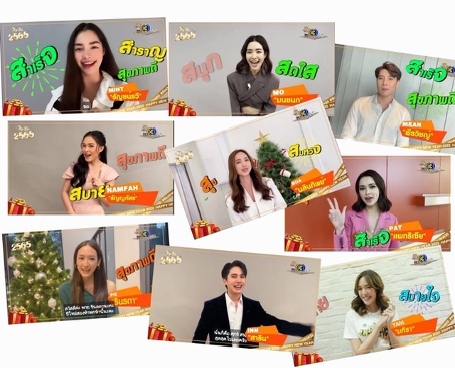 โดยส่วนใหญ่จะเน้นที่ เสือ แห่งความ สุข สมหวัง สมใจ และสุขภาพแข็งแรง เริ่มที่ออเจ้า “โป๊ป ธนวรรธน์ วรรธนะภูติ” ที่คิดมาแล้วเป็นอย่างดีเพื่อมอบ “สุขภาพดี มีความสุข ประสบความสำเร็จ” ให้กับทุกคน ส่วนแม่นาย “เบลล่า ราณี แคมเปน” ก็อยากให้แฟน ๆ ช่อง 3 ทุก ๆ คน “สดใส สุขภาพดี มีสติ” ส่วน “เจมส์ จิรายุ ตั้งศรีสุข” ฝากให้ทุกคน “สำเร็จ สำราญ สุขภาพดี” มาที่พระเอกขวัญใจเอเชียอย่าง “หมาก ปริญ สุภารัตน์” ก็ขอให้ “มีความสุข สบายกายสบายใจ สดใสสดชื่นตลอดไป” ด้านนางเอกสาว “คิมเบอร์ลี แอน โวลเทมัส” ขอให้แฟน ๆ ช่อง 3 “สุขภาพดี สำเร็จในทุกสิ่ง และขอให้สุขใจ” ส่วนนางเอกมากความสามารถ “แต้ว ณฐพร เตมีรักษ์” อยากจะขอให้คนไทยทุกคน “สุข สบาย สำเร็จ” เหมือนกับ “โบว์ เมลดา สุศรี” ที่ขอให้คนไทย “สุข สนุกสนาน และสดใส” ส่วนพระเอกตี๋หล่อ “เจมส์ มาร์” บอกว่า “สนุก สมหวัง สดใส” ซึ่งสาว “ญาญ่า อุรัสยา เสปอร์บันด์” อยากให้ทุกคน “มีความสุข สุขภาพแข็งแรง และประสบความสำเร็จ” ส่วนวัยรุ่นอย่าง “ออกัส วชิรวิชญ์ ไพศาลกุลวงศ์” อยากให้คนไทย “สุข สบาย สุขภาพแข็งแรง” ส่วนนาย “กลัฟ คณาวุฒิ ไตรพิพัฒนพงษ์” ขอส่ง 3 เสือ “สุขครับผม สบายครับ สำเร็จครับผม”