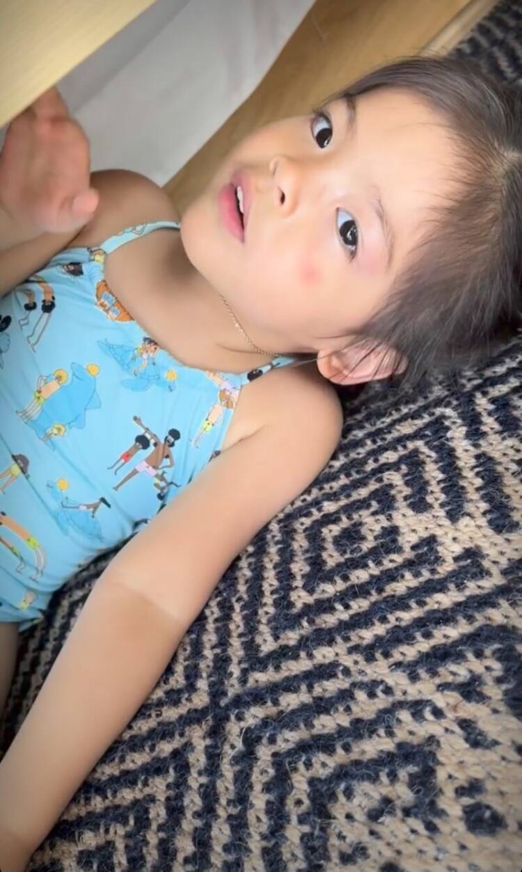 ล่าสุดคุณแม่คนสวยก็โพสต์คลิปลูกสาวตัวน้อยกำลังเจื้อยแจ้วเล่าถึงเหตุการณ์ตอนถูกยุงกัดว่า