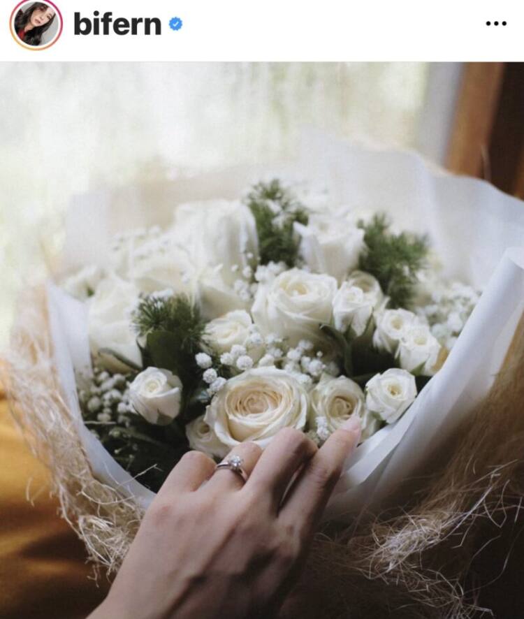 สาวโบเฟิร์นได้โพสต์ภาพแหวนเพชรบนนิ้วนางข้างซ้ายของเธอลงในอินสตาแกรม