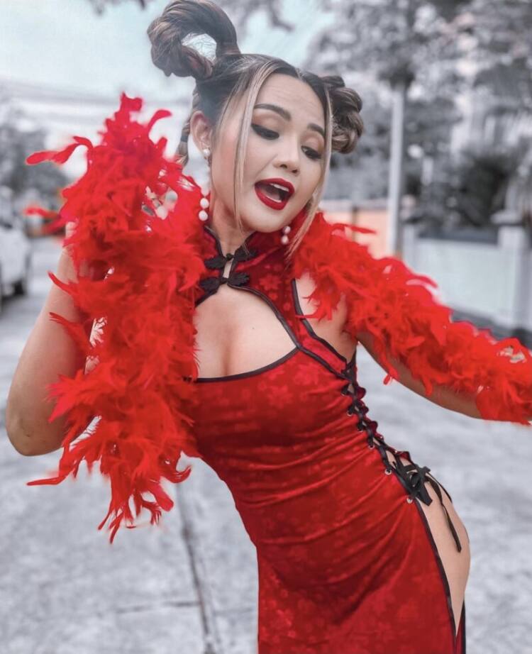 แต่ล่าสุดสาวตั๊กแตนก็ไม่ยอมหลุดกระแสเทศกาลตรุษจีน โดยจัดเต็มเป็นอาหมวยสุดแซ่บทั้งโชว์ร่องอก ทั้งแหวกสะโพก พร้อมโพสต์ท่าสุดจึ้งแอ่นอก แหกขาบงในอินสาแกรม