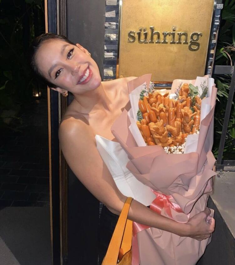 ทำเอาสาวแอริน ทั้งอายทั้งสะใจ เพราะช่อดอกไม้ที่ได้ทำมาจาก “ไส้กรอก” ของโปรดของเธอนั่นเอง