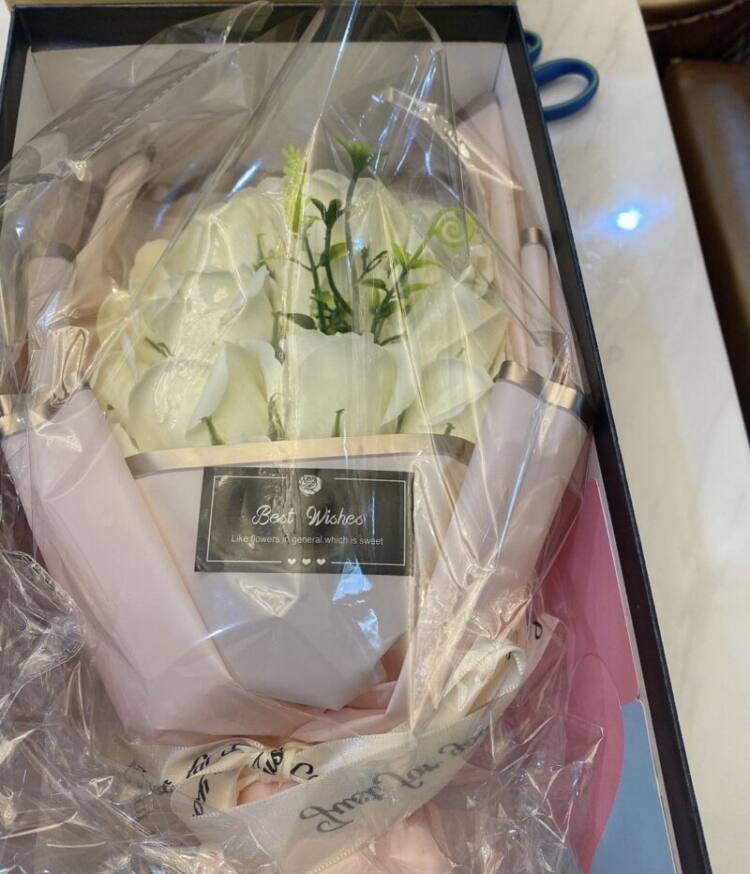 “ใกล้วันวาเลนไทน์ใครหรอส่งดอกกุหลาบมาให้ งงดิ แต่ก็ขอบคุณมากนะคะ”