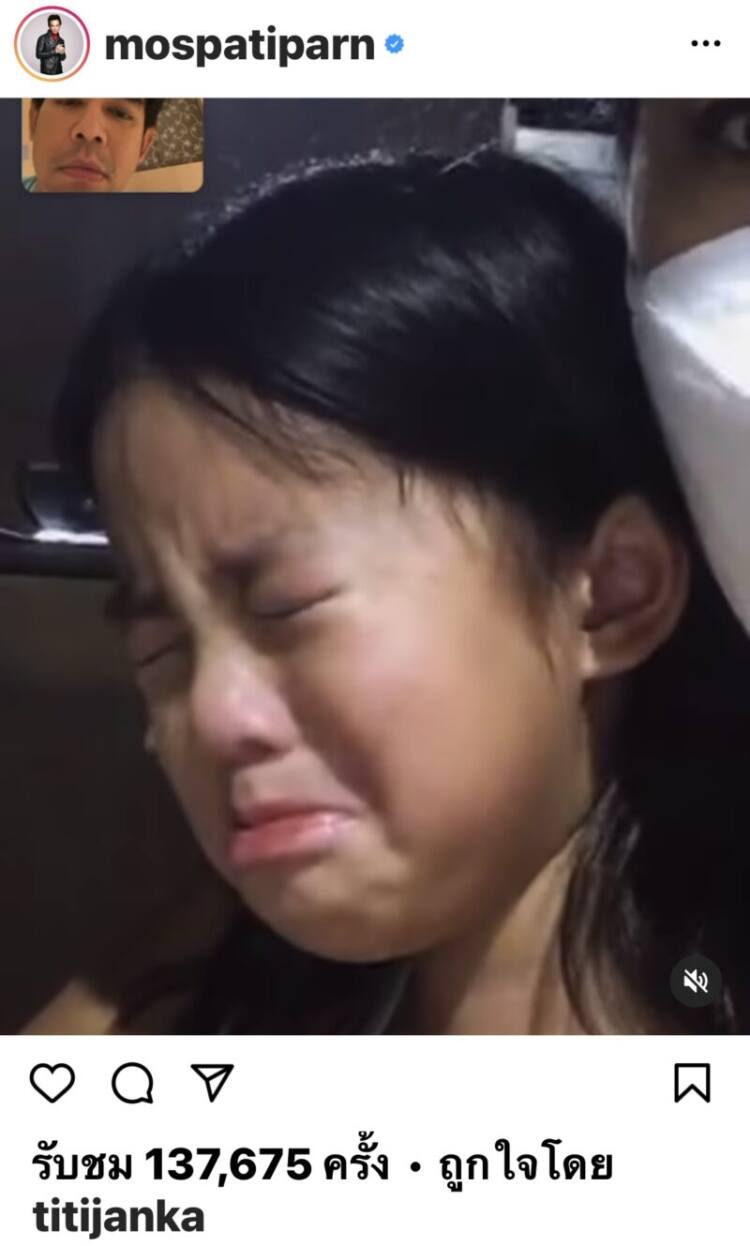 ล่าสุด มอส ได้เผยคลิปขณะวีดีโอคอลคุยกับลูกสาว “น้องสวรรค์” ซึ่งคุยไปร้องไห้ไป พร้อมแคปชั่นบีบหัวใจของคนเป็นพ่อว่า