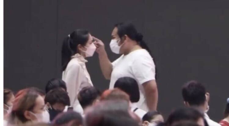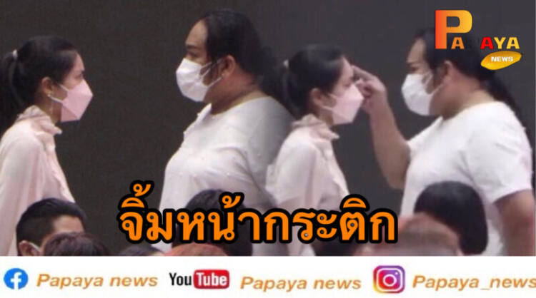 โดยมีช่วงหนึ่ง “เต้ ภาราดา จินดารัตน์” ช่างแต่งหน้าและเป็นผู้จัดการ “พิ้งกี้ สาวิกา” ได้เข้าไปพูดคุยกับ “กระติก อิจศรินทร์ จุฑาสุขสวัสดิ์” และมีการใช้นิ้วจิ้มไปที่หน้าผากของกระติก ระหว่างรอพิธีไว้อาลัยแตงโม ด้านในคริสตจักรเสรีภาพกรุงเทพ ก่อนที่ต่างฝ่ายต่างแยกย้ายกันไป
