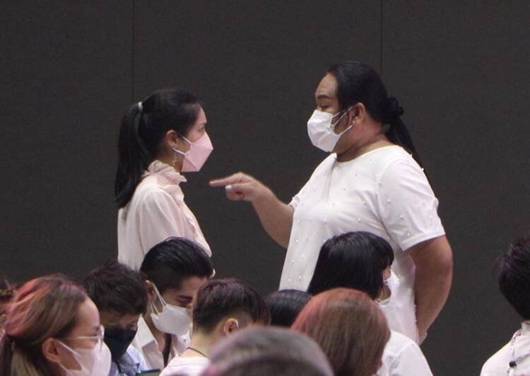 เมื่อกี้ไม่ได้ทะเลาะอะไรกัน คุยกันปกติ มีพยานแวดล้อมเต็มเลย ถามว่าเป็นการเคลียร์ใจกันมั้ย ก็คุยเฉยๆ ตนได้บอกพี่เต้ ว่าอย่าชี้หัวหนูเดี๋ยวเป็นข่าว ปกติเราคุยกันเป็นปกติแบบนี้อยู่แล้ว