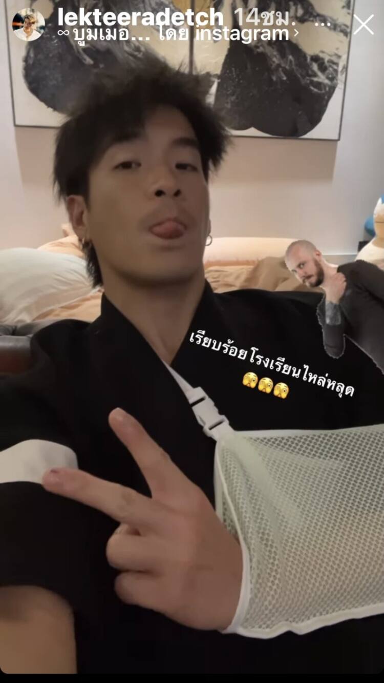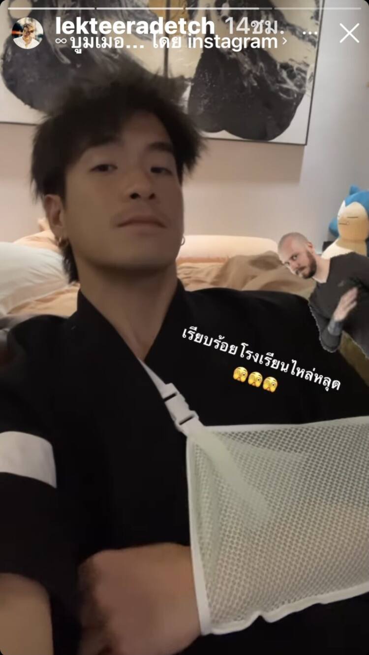 แฟนคลับอดห่วงไม่ไหว เมื่อพระเอกหนุ่ม “อาเล็ก ธีรเดช เมธาวรายุทธ” ได้โพสต์รูปตัวเองใส่ผ้าคล้องแขน แต่ยังชู 2 นิ้วลงในสตอรี่อินสตาแกรม