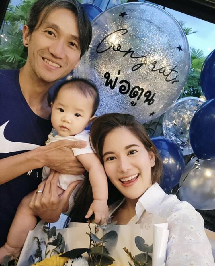 โดยก้อย ก็ได้โพสต์ภาพพ่อ แม่ ลูก พร้อมช่อดอกทานตะวัน ที่มีข้อความเขียนติดไว้บนการ์ดว่า “ยินดีกับความสำเร็จของพ่อตูน พ่อพ่อของทะเลเก่งที่สุดเลยคับ !
