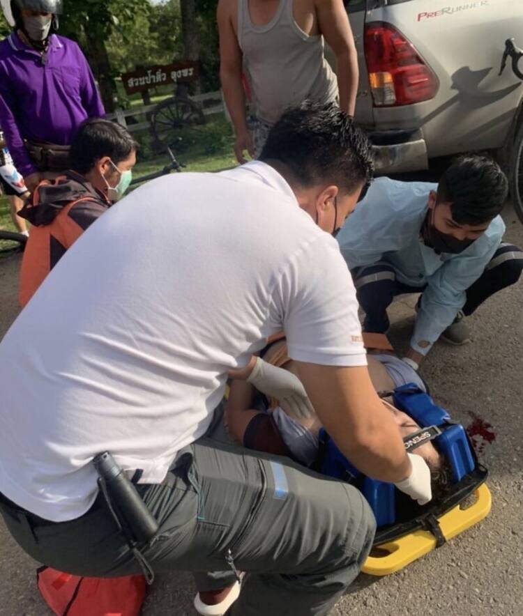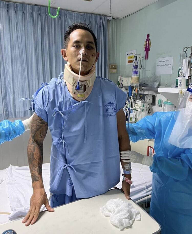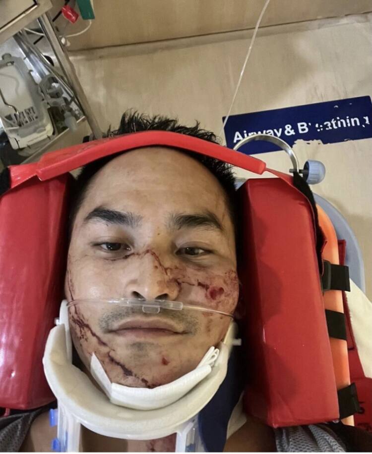 จนกระดูกซี่โครงหักทิ่มปอด มีอาการบาดเจ็บบริเวณคอ กล่องเสียงยุบ ต้องผ่าและดามกล่องเสียง จนทำให้ไม่สามารถรับประทานอาหารเองได้ ต้องอยุ่ในห้องไอซียู