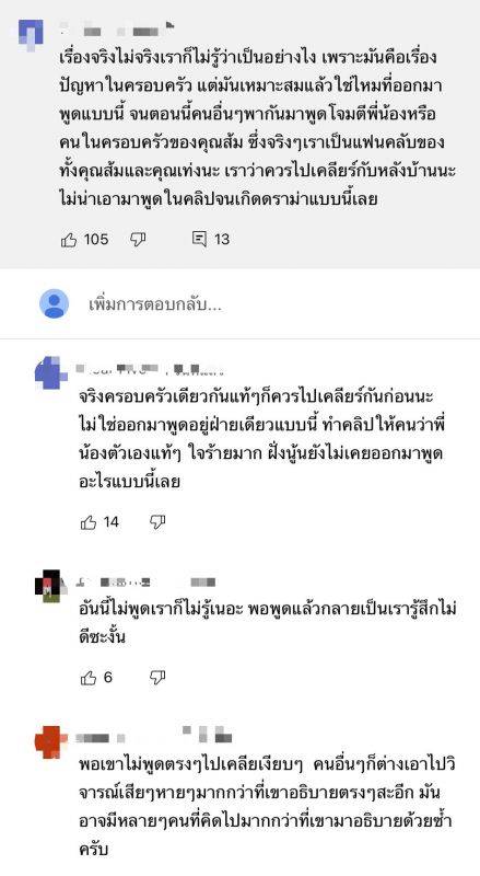 โดยหลังจากที่คลิปวีดีโอดังกล่าวได้เผยแพร่ออกไป ก็มีชาวเน็ตเข้ามาคอมเมนต์วิพากษ์วิจารณ์มากมาย ว่าเรื่องของคนในครอบครัวควรจะไปเคลียร์กันเอง ไม่ควรนำมาพูดข้างนอก เพราะไม่เป็นผลดีกับทุกฝ่าย และตั้งข้อสังเกตว่าน่าจะมีปัญหาบางอย่างระหว่าง 2 ครอบครัว