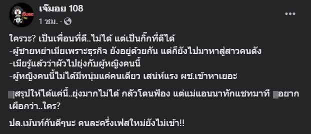 สรุป คือ ผู้ชายคนนี้ มีเมียและลูกแล้ว แต่หย่ากันแล้ว แล้วบุคคลที่สามที่เข้ามาก็เคยทำพฤติกรรมแย่งแฟนเพื่อนมาแล้ว แถมสาว “จ๊ะจ๋า” ยังแย้มอีกว่า เธอคนนี้เป็นหนึ่งในคนที่ออกมาประกาศว่าจะฟ้องแอนนาก่อนหน้านี้ เหตุเพราะแอนนาเคยเล่าข่าวถึง