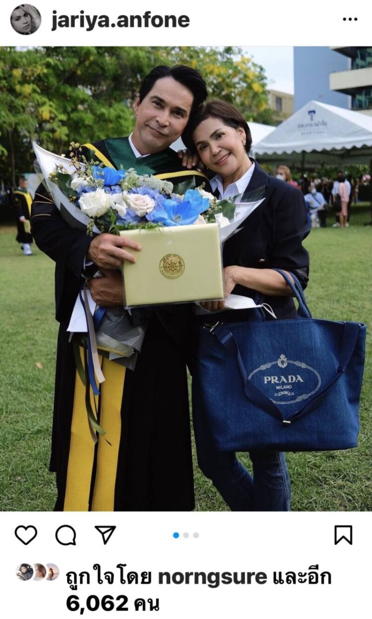 ต้องขอแสดงความยินดีกับพระเอกรุ่นใหญ่ “จอนนี่ แอนโฟเน่” ด้วย เมื่อศรีภรรยาอย่าง “นก จริยา” ได้โพสต์ภาพสามีเข้ารับพระราชทานปริญญาบัตร ที่สถาบันบัณฑิตพัฒนบริหารศาสตร์ (นิด้า) NIDA