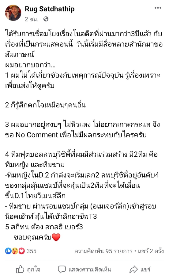 3 ผมอยากอยู่สงบๆ ไม่หิวแสง ไม่อยากเกาะกระแส จึงขอ No Comment เพื่อไม่มีผลกระทบกับใครครับ